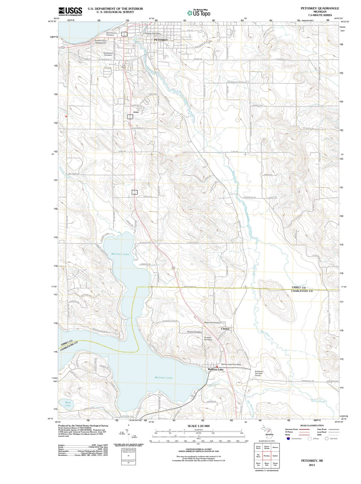 2011 Petoskey, MI Michigan USGS Topographic Map Historic
